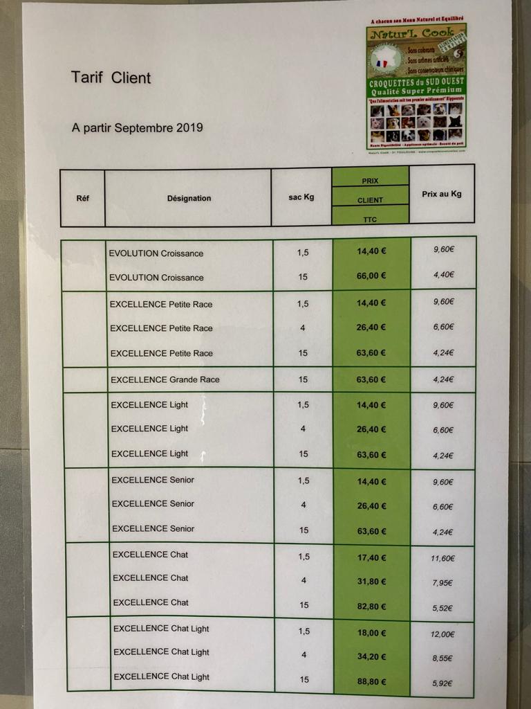 | Description | Sac en kg | Prix TTC | Prix au kg |
